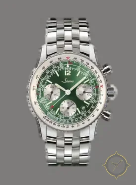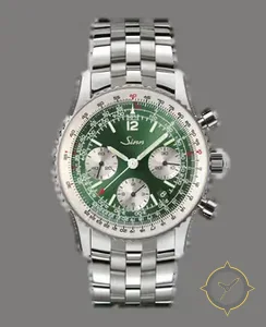 A Pilot watch with a vintage-inspired 35.5mm case, crafted from stainless steel featuring a green dial with a unique sunburst / radial gradient finish.