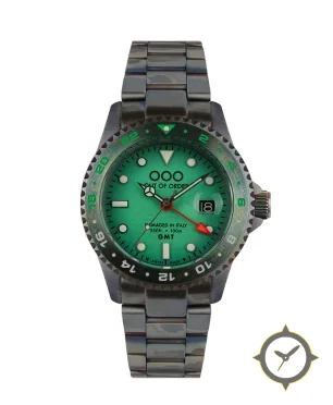 A watch with a bold 46.5mm presence on the wrist, crafted from stainless steel featuring a turquoise dial with a unique sunburst finish.
