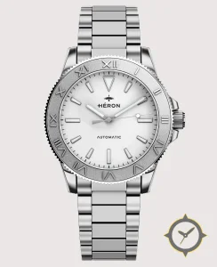 A Sports watch with a bold 45.5mm presence on the wrist, crafted from stainless steel featuring a white dial with a unique smooth lacquered finish finish.