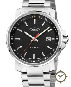 A Tool watch with a vintage-inspired 36.5mm case, crafted from stainless steel featuring a black dial with a unique matte finish.