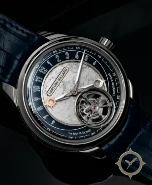 A Dress watch with a versatile 39mm case, that suits most wrists, crafted from stainless steel featuring a blue dial with a unique textured, moon-surface / crater-like relief on central disk finish.