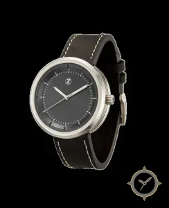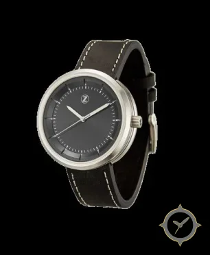 A Minimalist watch with a bold 41.5mm presence on the wrist, crafted from stainless steel featuring a black dial with a unique matte finish.
