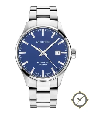 A Dress watch with a vintage-inspired 35mm case, crafted from stainless steel featuring a blue dial with a unique matte finish.