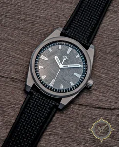 A Sports watch, crafted from titanium featuring a gray dial with a unique meteorite-like textured finish (cross-hatched) finish.