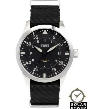 A Pilot watch with a bold 42.5mm presence on the wrist, crafted from stainless steel featuring a black dial with a unique matte finish.