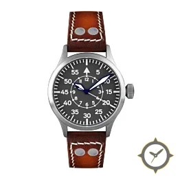 A Pilot watch with a versatile 39mm case, that suits most wrists, crafted from stainless steel featuring a black dial with a unique matte finish.