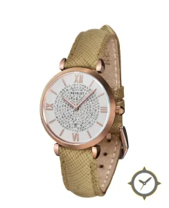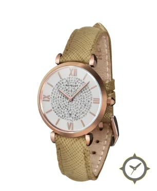 A Dress watch with a versatile 38mm case, that suits most wrists, crafted from gold featuring a white dial with a unique crystal pavé center with smooth outer ring finish.