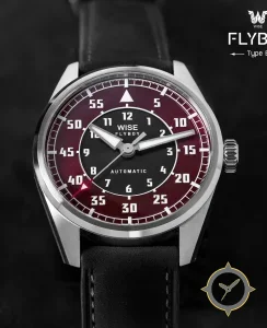 A Pilot watch with a versatile 41mm case, that suits most wrists, crafted from stainless steel featuring a red dial with a unique matte two-tone (matte black inner disc, matte burgundy/red outer ring) finish.
