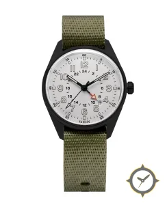 A Pilot watch with a versatile 40mm case, that suits most wrists featuring a white dial with a unique matte finish.