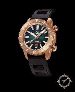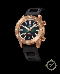 A Dive watch with a bold 47mm presence on the wrist, crafted from bronze featuring a green dial with a unique sunburst finish.