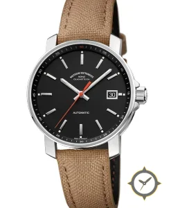 A Field watch with a bold 42mm presence on the wrist, crafted from stainless steel featuring a black dial with a unique matte finish.