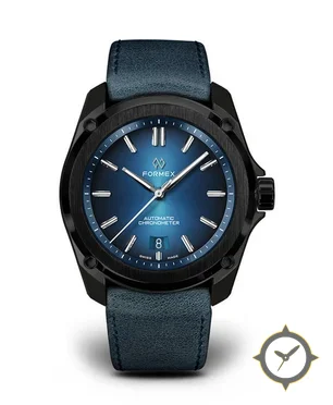 A Sports watch with a bold 43mm presence on the wrist, crafted from stainless steel featuring a blue dial with a unique sunburst finish.