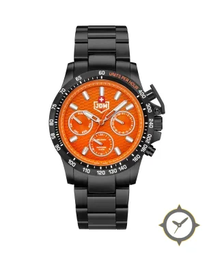 A Chronograph watch with a bold 50.5mm presence on the wrist, crafted from stainless steel featuring a orange dial with a unique waffle texture finish.