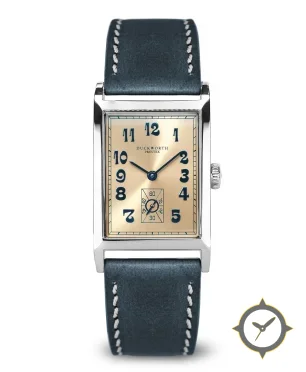 A Dress watch with a vintage-inspired 26mm case, crafted from stainless steel featuring a gold dial with a unique sunburst finish.