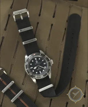 A Dive watch, crafted from stainless steel featuring a black dial with a unique matte finish.