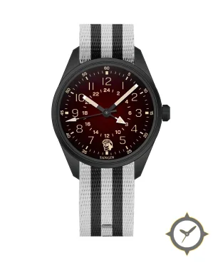 A Field watch with a bold 44.5mm presence on the wrist, crafted from stainless steel featuring a red dial with a unique sunburst gradient finish.