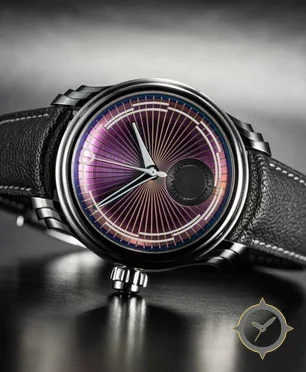A Dress watch with a vintage-inspired 36.5mm case, crafted from stainless steel featuring a purple dial with a unique sunburst finish.