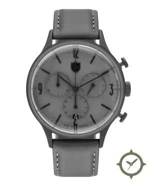 A Chronograph watch with a bold 45.5mm presence on the wrist, crafted from stainless steel featuring a gray dial with a unique matte finish.