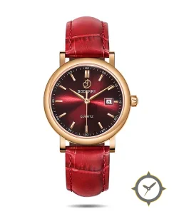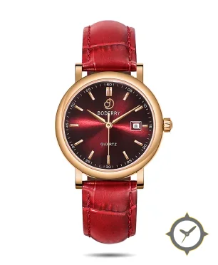 A Dress watch with a vintage-inspired 29.5mm case, crafted from gold featuring a red dial with a unique sunburst finish.