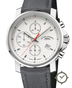 A Chronograph watch with a vintage-inspired 36mm case, crafted from stainless steel featuring a white dial with a unique matte finish.