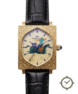 A Dress watch with a bold 41.5mm presence on the wrist, crafted from gold featuring a white dial with a unique enamel miniature painting finish.