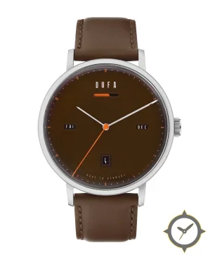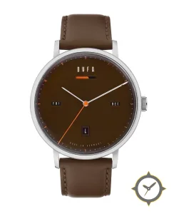 A Minimalist watch with a versatile 41mm case, that suits most wrists, crafted from stainless steel featuring a brown dial with a unique smooth lacquer finish and a helpful power reserve indicator.