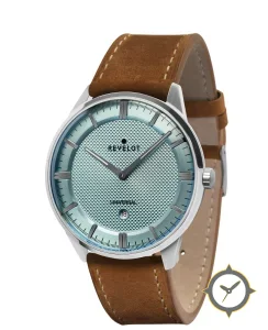 A Dress watch with a vintage-inspired 37mm case, crafted from stainless steel featuring a turquoise dial with a unique clous de Paris / waffle guilloché texture finish.