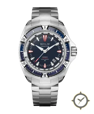 A Dive watch with a bold 41.5mm presence on the wrist, crafted from stainless steel featuring a navy dial with a unique sunburst finish.
