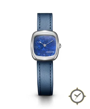 A Dress watch with a vintage-inspired 26.5mm case, crafted from stainless steel featuring a blue dial with a unique natural stone (lapis lazuli) with subtle granular texture finish.