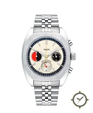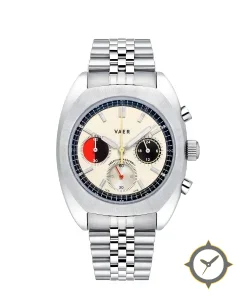 A Chronograph watch with a versatile 40mm case, that suits most wrists, crafted from stainless steel featuring a white dial with a unique smooth, matte finish.