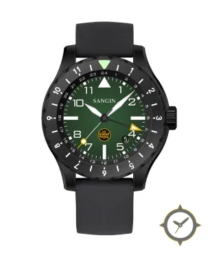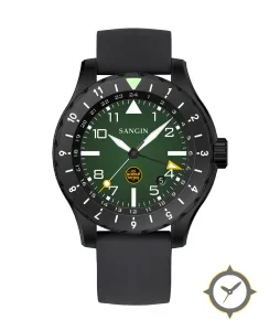 A Pilot watch with a bold 43mm presence on the wrist, crafted from stainless steel featuring a green dial with a unique sunburst/ombré gradient finish.