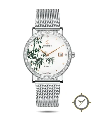 A Dress watch with a vintage-inspired 31.5mm case, crafted from stainless steel featuring a white dial with a unique printed finish.