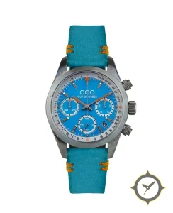 A Chronograph watch with a vintage-inspired 35mm case, crafted from stainless steel featuring a blue dial with a unique matte finish.