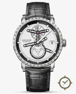 A Skeleton watch with a vintage-inspired 36mm case, crafted from stainless steel featuring a white dial with a unique partially skeletonized / open-work finish.