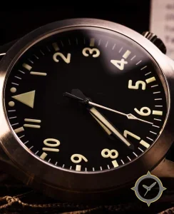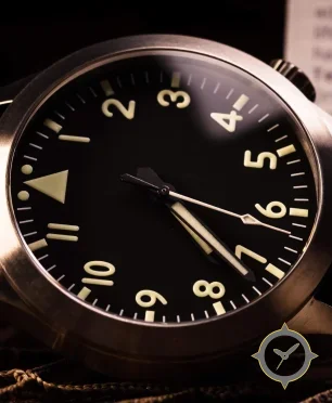 A Pilot watch, crafted from stainless steel featuring a black dial with a unique matte finish.