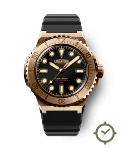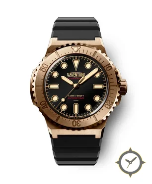 A Dive watch with a versatile 40mm case, that suits most wrists, crafted from bronze featuring a black dial with a unique matte finish.