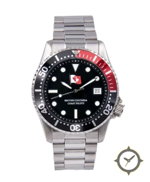 A Dive watch with a bold 41.5mm presence on the wrist, crafted from stainless steel featuring a black dial with a unique matte finish and a true GMT complication for tracking a second time zone.