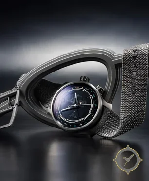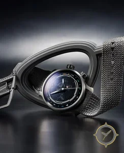A GMT watch with a bold 41.5mm presence on the wrist, crafted from titanium featuring a navy dial with a unique semi-skeleton with subtle sunburst reflection finish and a true GMT complication for tracking a second time zone.