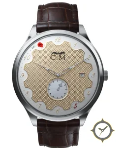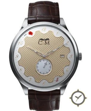 A Dress watch with a vintage-inspired 32mm case, crafted from stainless steel featuring a gold dial with a unique guilloché (clous de Paris) finish.