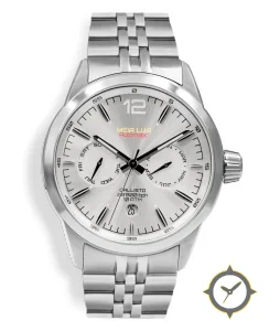 A Dress watch with a vintage-inspired 37mm case, crafted from stainless steel featuring a silver dial with a unique brushed sunburst finish.