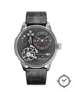 A Skeleton watch with a bold 41.5mm presence on the wrist, crafted from stainless steel featuring a gray dial with a unique matte grained finish and a helpful power reserve indicator.