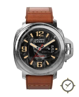 A Military watch with a vintage-inspired 37.5mm case, crafted from stainless steel featuring a black dial with a unique marbled / smoky finish finish.