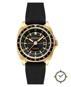 A Dive watch with a bold 43mm presence on the wrist, crafted from gold featuring a black dial with a unique matte finish.