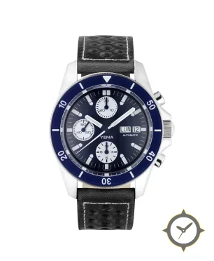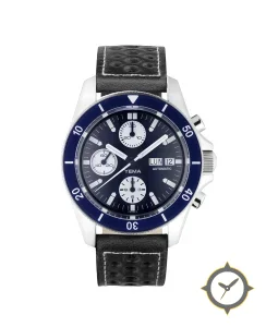 A Chronograph watch with a versatile 38mm case, that suits most wrists, crafted from stainless steel featuring a blue dial with a unique sunburst finish.