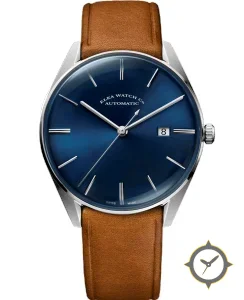 A Dress watch with a bold 43mm presence on the wrist, crafted from stainless steel featuring a blue dial with a unique sunburst finish.