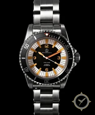 A Dive watch, crafted from stainless steel featuring a black dial with a unique matte finish.