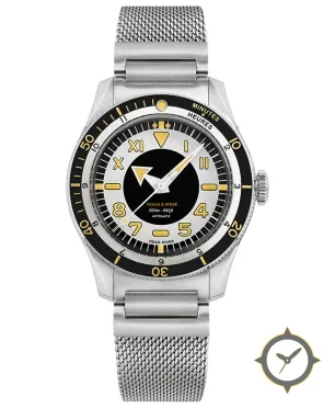 A Dive watch with a bold 41.5mm presence on the wrist, crafted from stainless steel featuring a black dial with a unique matte finish.