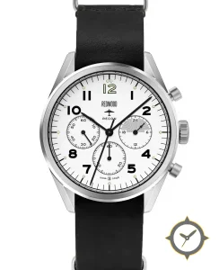 A Chronograph watch with a vintage-inspired 33mm case, crafted from stainless steel featuring a white dial with a unique matte finish.