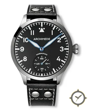 A Pilot watch with a vintage-inspired 36.5mm case, crafted from stainless steel featuring a black dial with a unique matte finish.