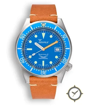 A Dive watch with a bold 47.5mm presence on the wrist, crafted from stainless steel featuring a blue dial with a unique matte finish.